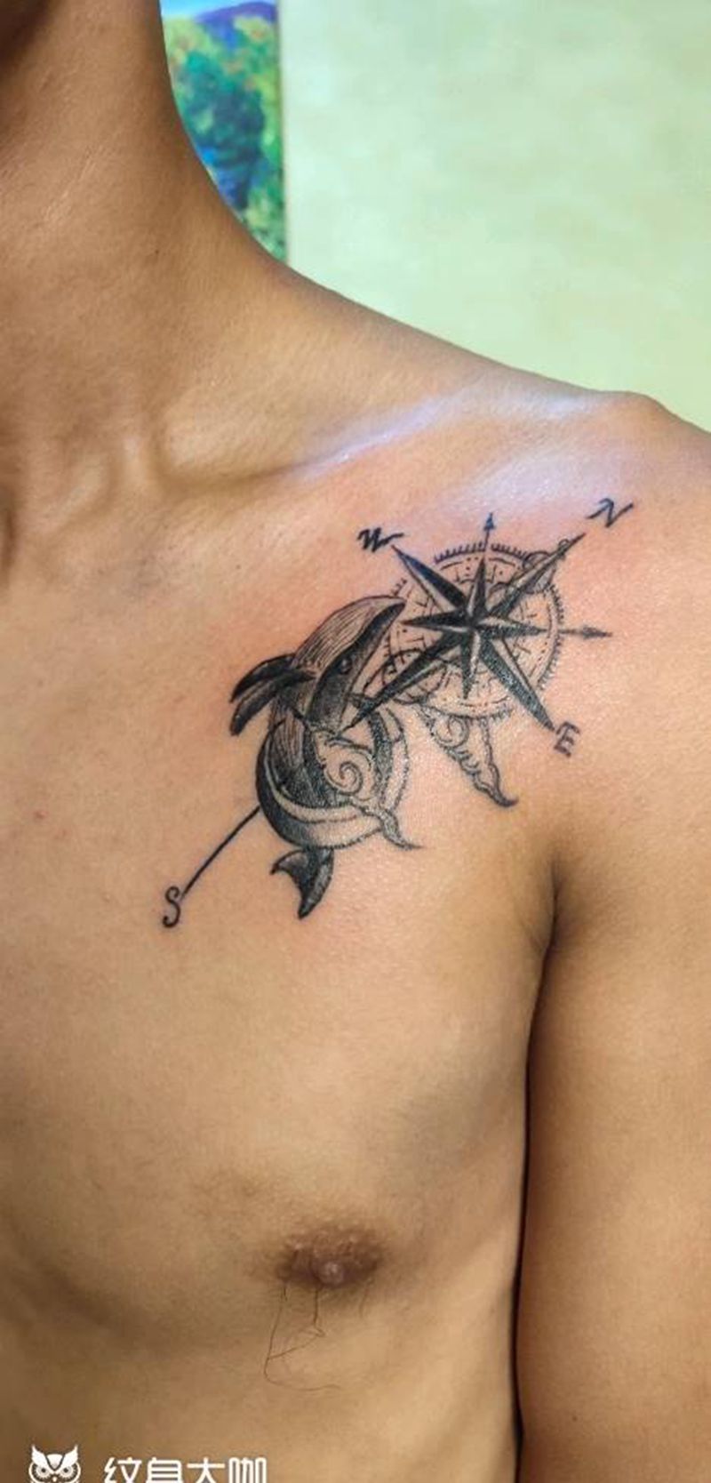 当前位置: 首页 >山西省太原市纹身店-太原翼龙刺青工作室纹身图案>指南针鲸鱼纹身图片_胸部新传统纹身图案