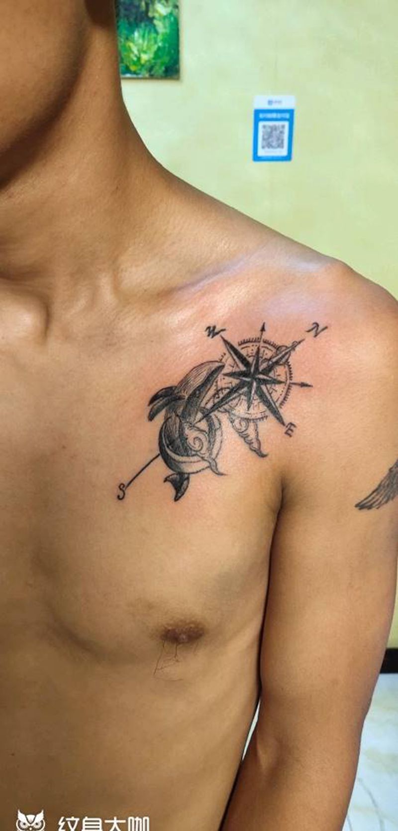 当前位置: 首页 >山西省太原市纹身店-太原翼龙刺青工作室纹身图案>指南针鲸鱼纹身图片_胸部新传统纹身图案