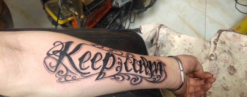 当前位置: 首页 >山西省太原市纹身店-太原翼龙刺青工作室纹身图案>花体字纹身图片_手臂花体字纹身图案
