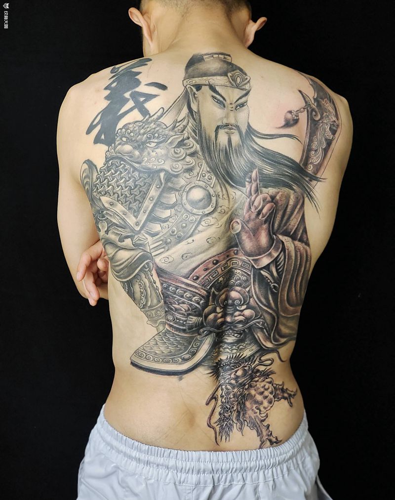 关公纹身图片_背部新传统纹身图案