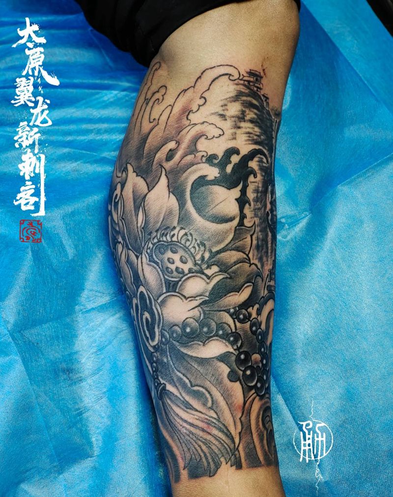 当前位置: 首页 >山西省太原市纹身店-太原翼龙刺青工作室纹身图案>小腿侧包纹身图片_腿部新传统纹身图案
