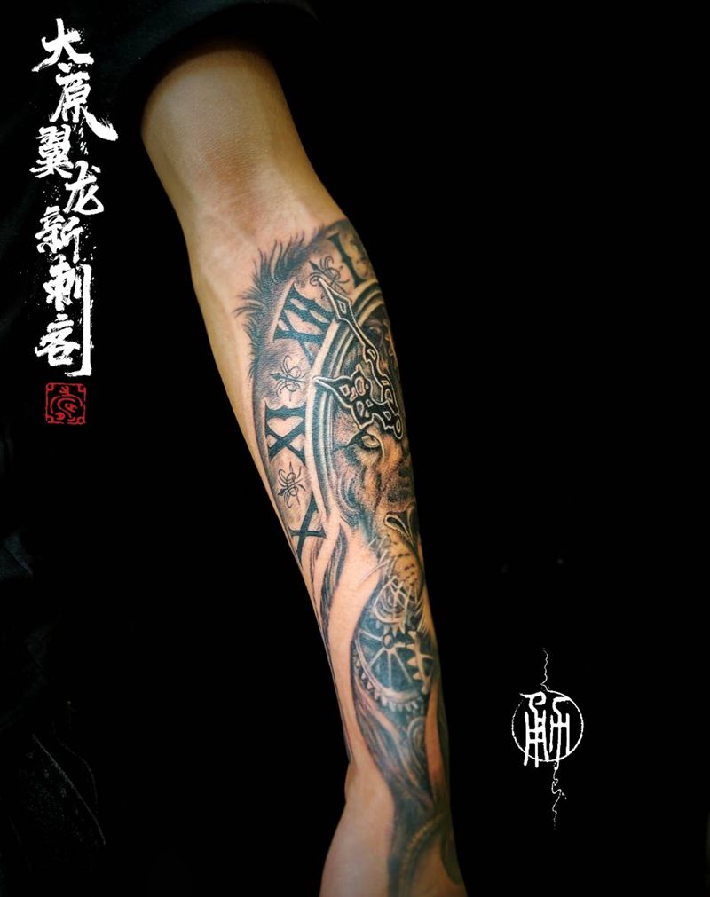 欧美狮子纹身纹身图片_手臂欧美写实新传统纹身图案