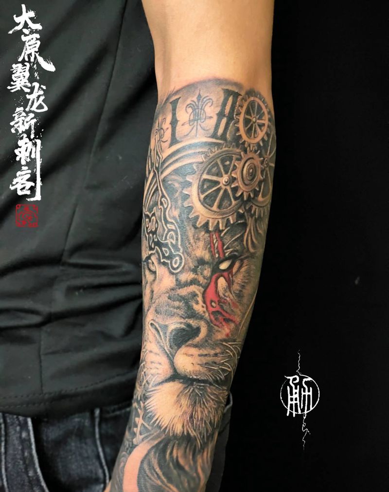 欧美狮子纹身纹身图片_手臂欧美写实新传统纹身图案