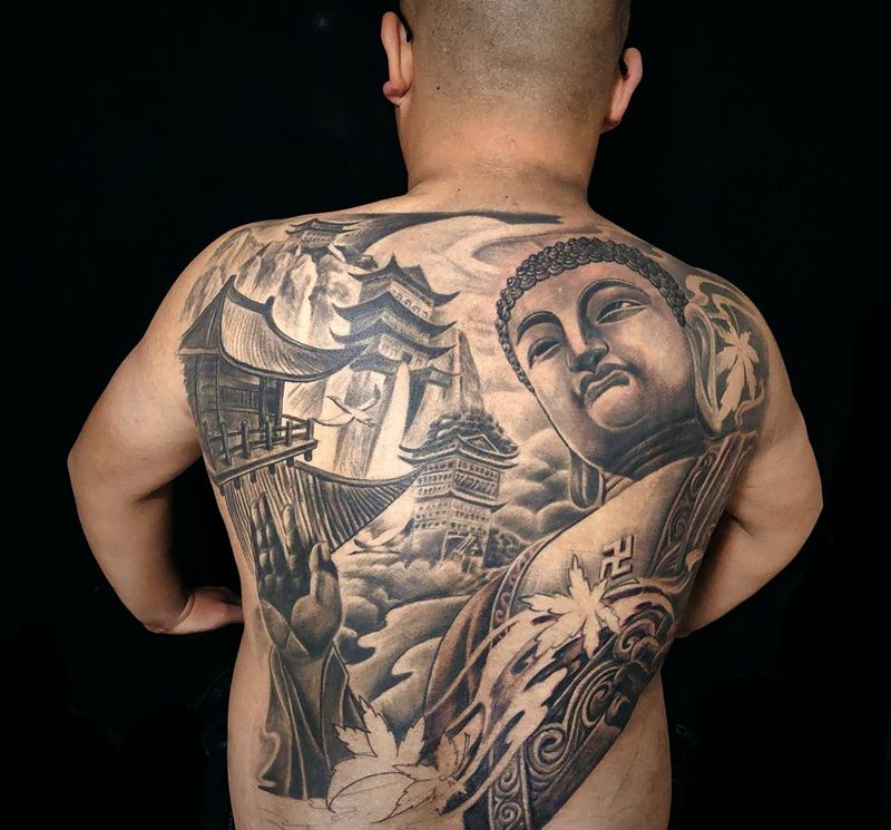 当前位置: 首页 >山西省太原市纹身店-太原翼龙刺青工作室纹身图案>阿弥陀佛纹身图片_背部新传统纹身图案