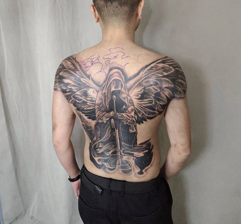 当前位置: 首页 >山西省太原市纹身店-太原翼龙刺青工作室纹身图案>死神未完成纹身图片_背部新传统纹身图案