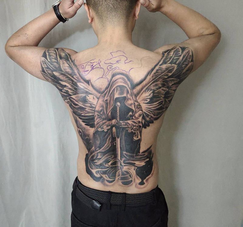 当前位置: 首页 >山西省太原市纹身店-太原翼龙刺青工作室纹身图案>死神未完成纹身图片_背部新传统纹身图案