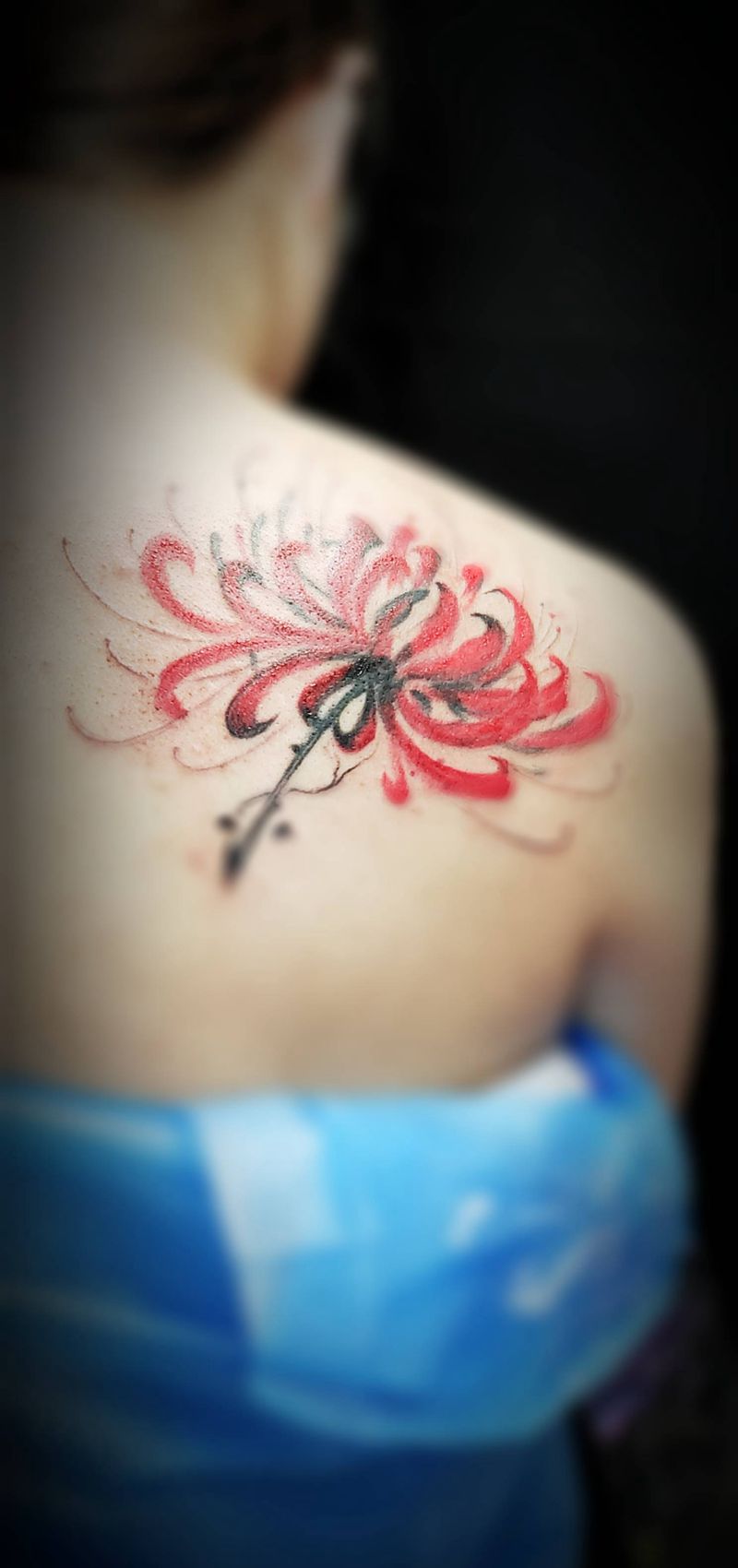 当前位置: 首页 >山西省太原市纹身店-太原翼龙刺青工作室纹身图案>修改彼岸花纹身图片_肩部新传统纹身图案