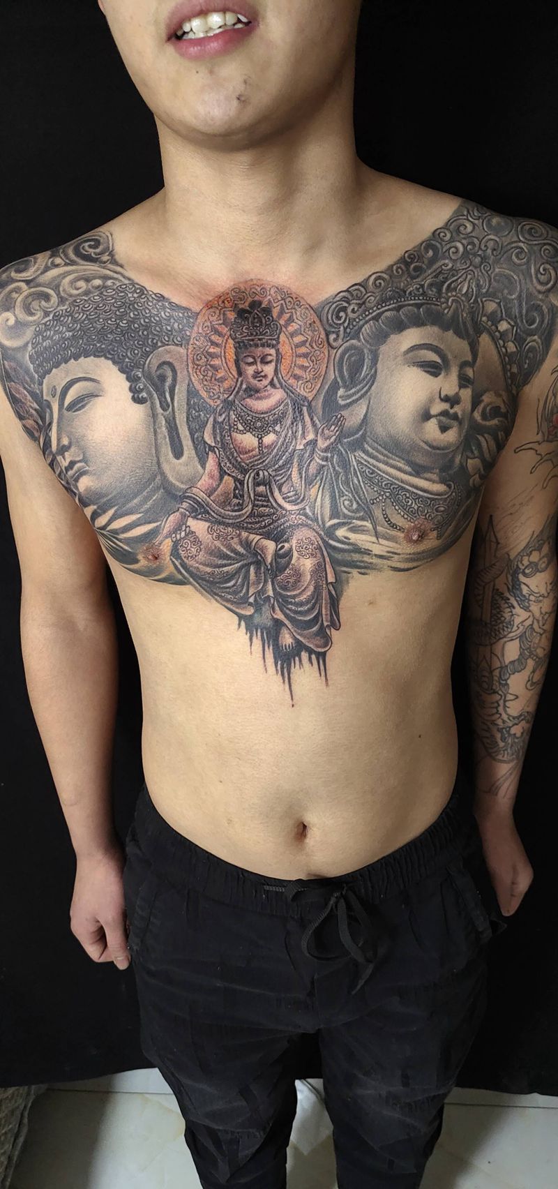 当前位置: 首页 >山西省太原市纹身店-太原翼龙刺青工作室纹身图案>3面佛纹身图片_胸部新传统纹身图案