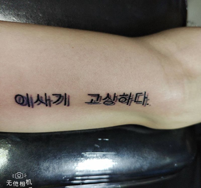 当前位置: 首页 >山西省太原市纹身店-太原翼龙刺青工作室纹身图案>韩文纹身图片_手臂老传统纹身图案