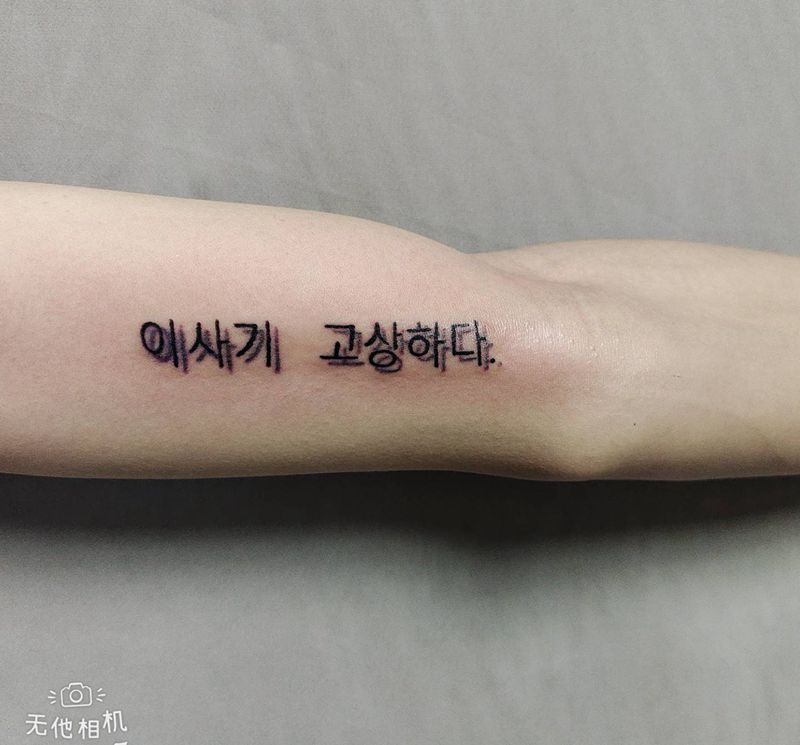 当前位置: 首页 >山西省太原市纹身店-太原翼龙刺青工作室纹身图案>韩文纹身图片_手臂老传统纹身图案