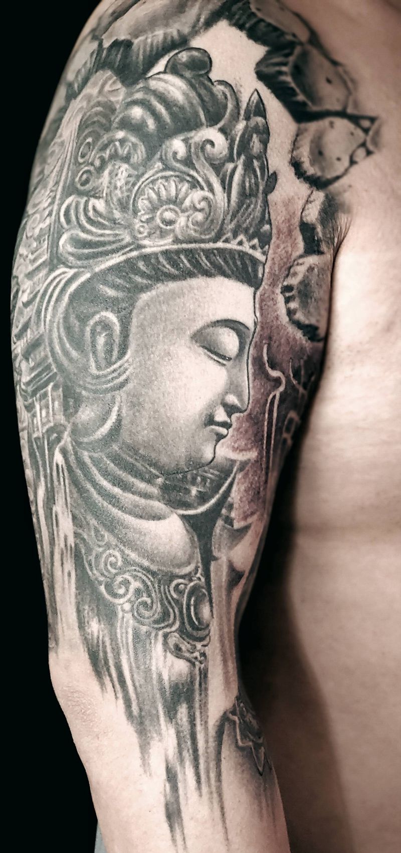 当前位置: 首页 >山西省太原市纹身店-太原翼龙刺青工作室纹身图案>菩萨纹身图片_手臂新传统纹身图案