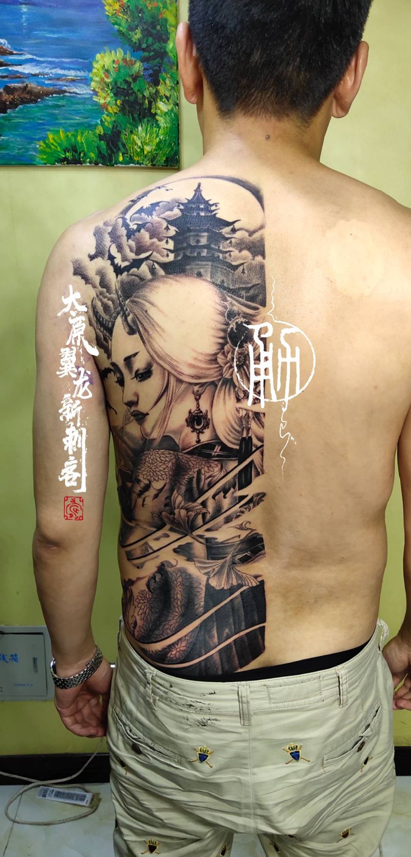 当前位置: 首页 >山西省太原市纹身店-太原翼龙刺青工作室纹身图案>古风美女纹身图片_背部新传统纹身图案