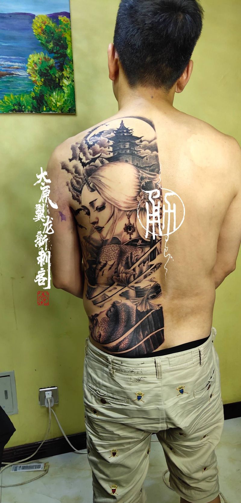 当前位置: 首页 >山西省太原市纹身店-太原翼龙刺青工作室纹身图案>古风美女纹身图片_背部新传统纹身图案