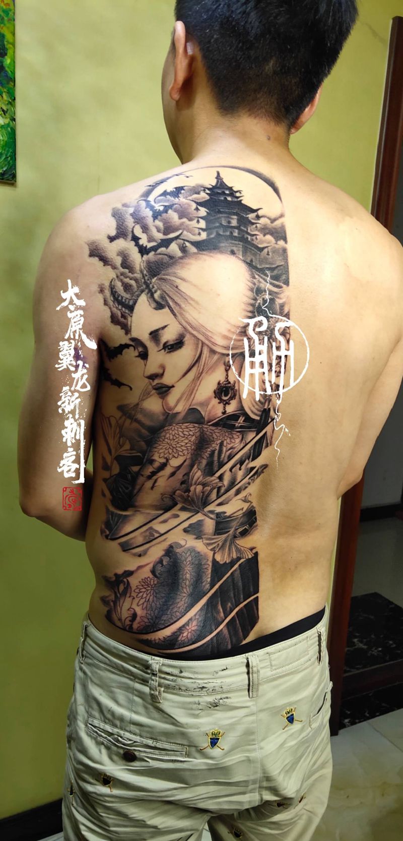 古风美女纹身图片_背部新传统纹身图案