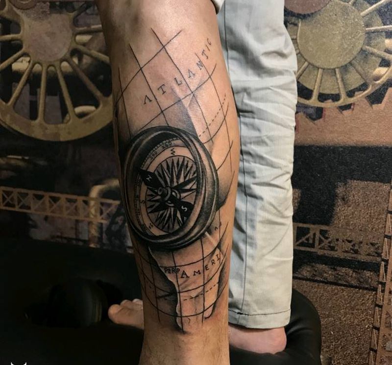• T包小腿吹火男+阿多福纹身图片_腿部老传统新传统吹火男阿