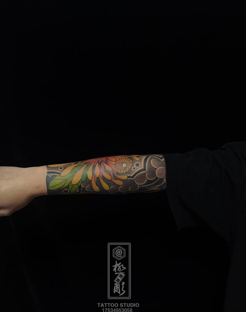 当前位置: 首页 >山西省太原市纹身店-极彫刺青纹身图案>老传统菊花包小臂纹身图片_手臂老传统纹身图案
