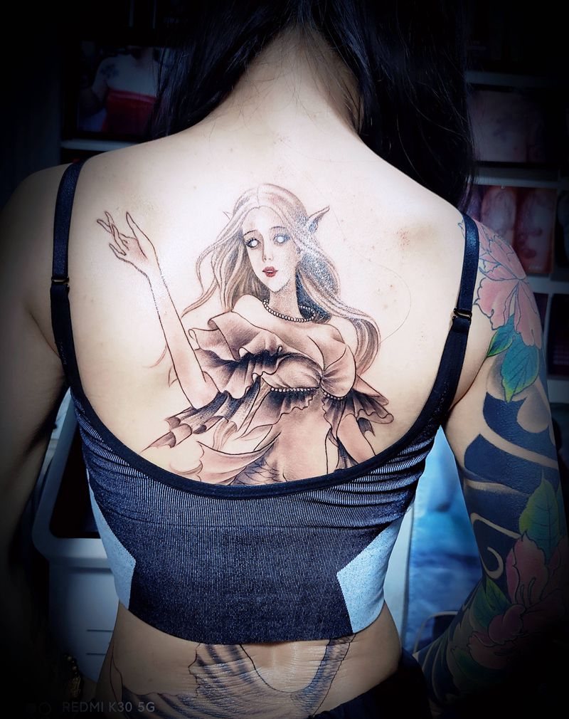 当前位置: 首页 >山西省大同市纹身店-精雕纹刺纹身图案>美人鱼纹身图片_背部新传统点刺清新纹身纹身图案