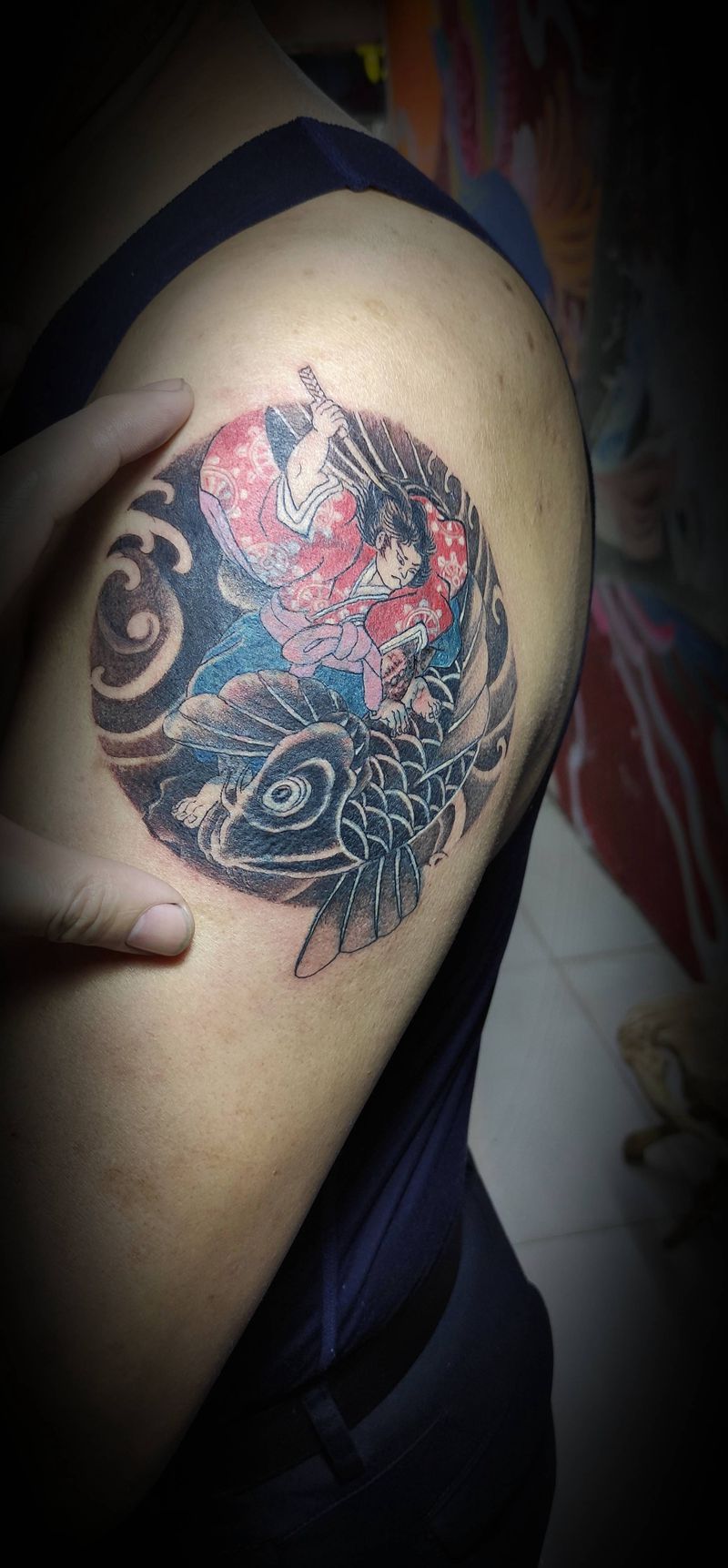 当前位置: 首页 >山西省大同市纹身店-精雕纹刺纹身图案>张顺杀鱼遮盖旧纹身纹身图片_手臂新传统老传统微雕老传统纹身图案
