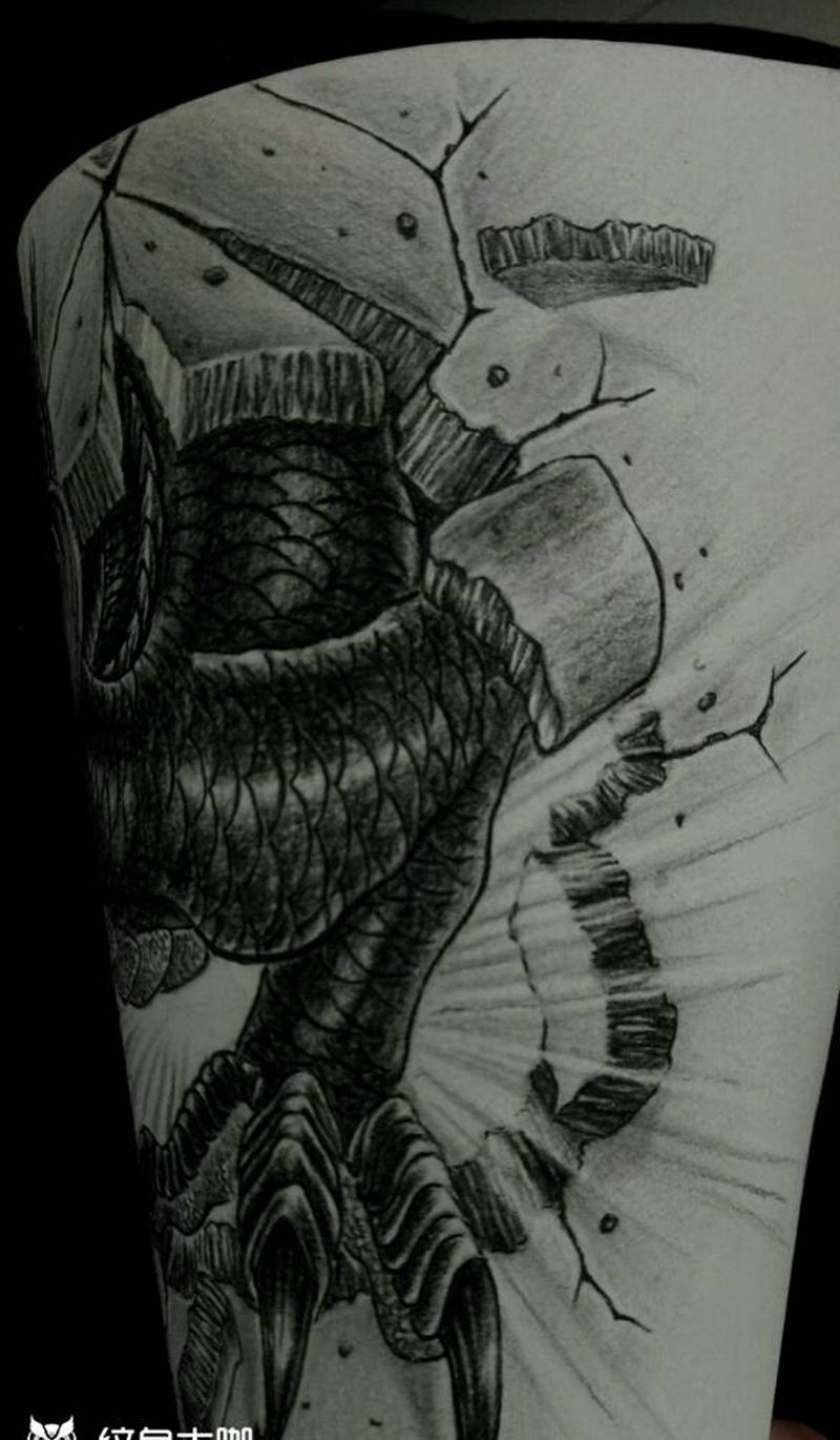 当前位置: 首页 >山西省大同市纹身店-精雕纹刺纹身图案>原创3D破壁龙手稿,纹身图片_肩部胸部传统动物龙手稿纹身图案