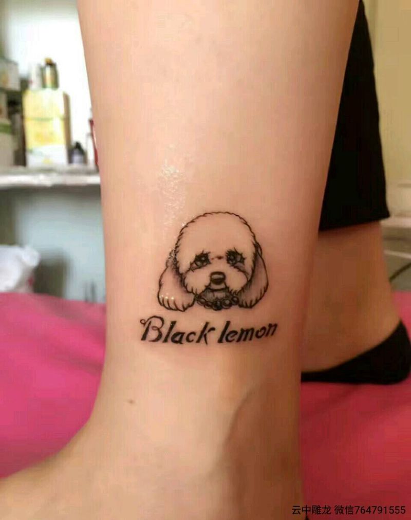泰迪-柠檬纹身图片_腿部脚部清新动物成品纹身图案