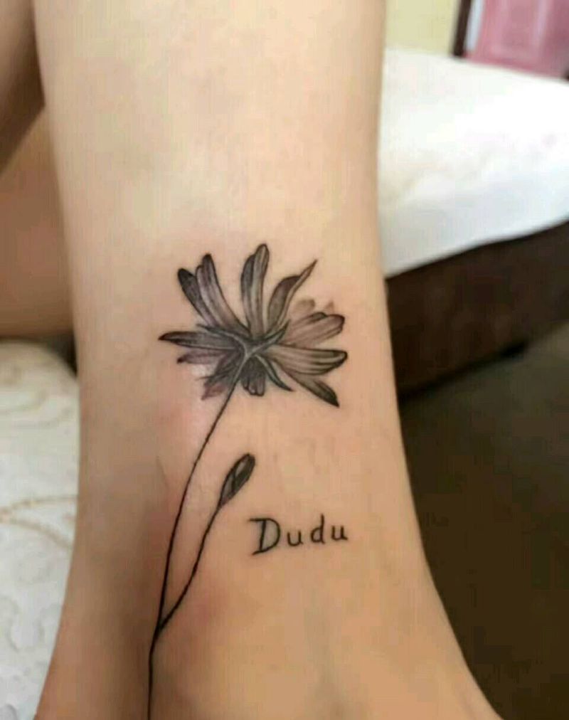 当前位置: 首页 >山西省大同市纹身店-精雕纹刺纹身图案>小野菊纹身图片_腿部脚部清新植物成品纹身图案
