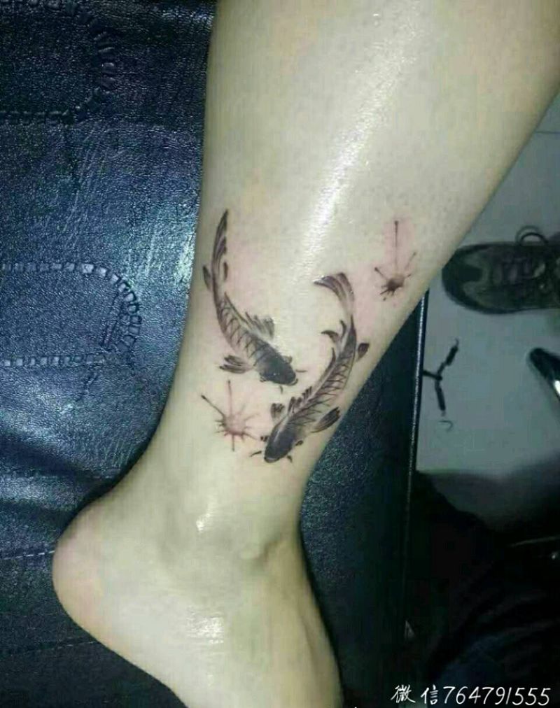 水墨鱼纹身图片_脚部清新动物纹身图案