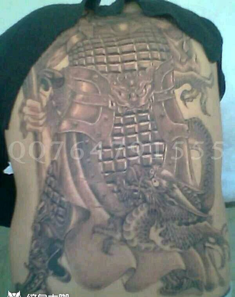 当前位置: 首页 >山西省大同市纹身店-精雕纹刺纹身图案>纹身:关公降龙纹身图片_背部传统人物关公成品纹身图案