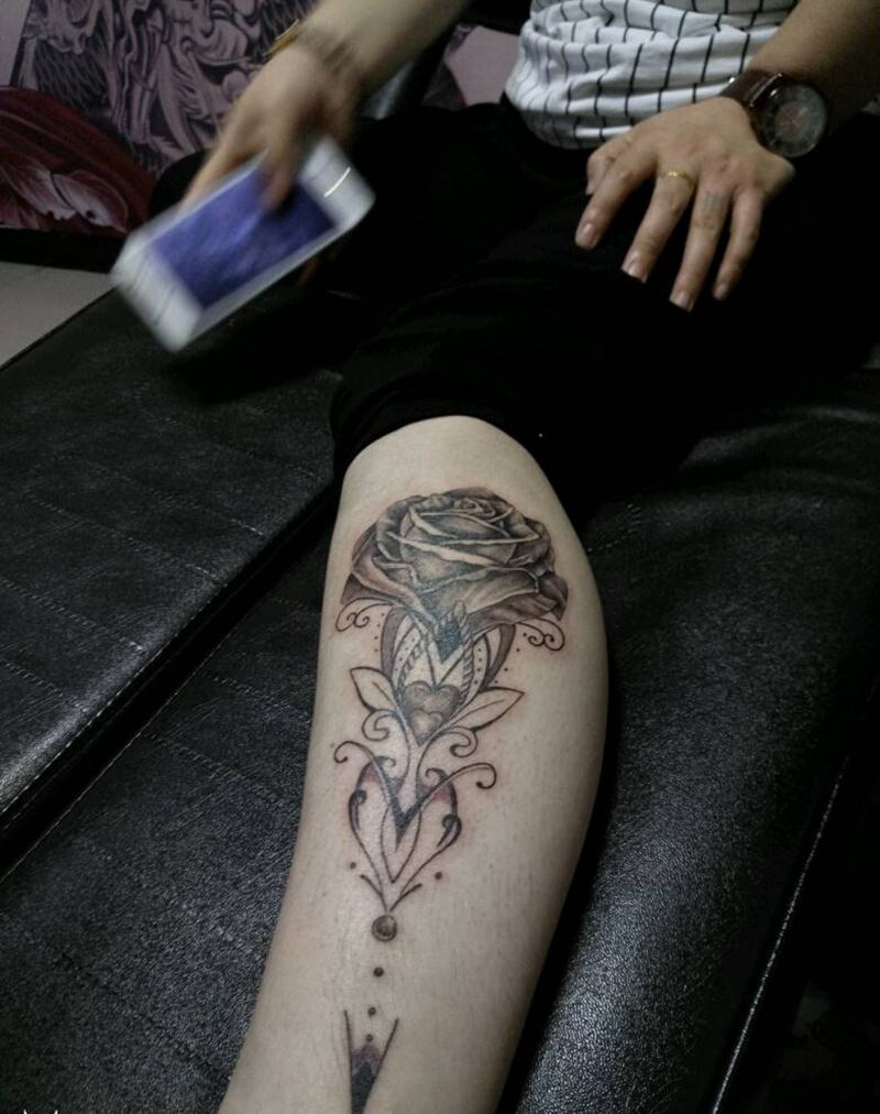 • T网红王老大花腿龙纹身图片_腿部新传统纹身图案