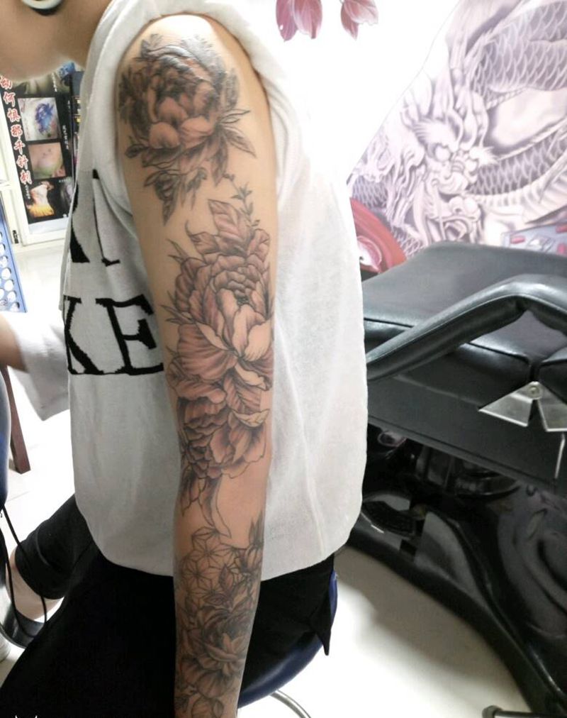 当前位置: 首页 >山西省大同市纹身店-精雕纹刺纹身图案>花 臂纹身图片_手臂清新植物牡丹,花成品纹身图案