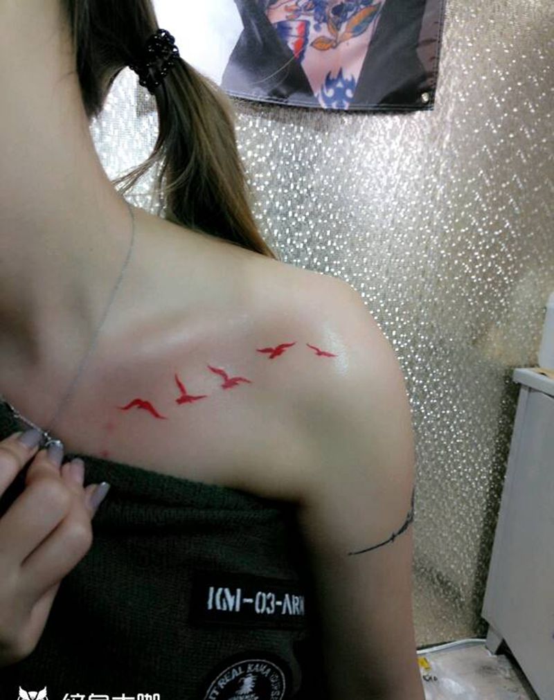 当前位置: 首页 >山西省大同市纹身店-精雕纹刺纹身图案>小清新大雁纹身图片_肩部胸部清新动物图腾成品纹身图案