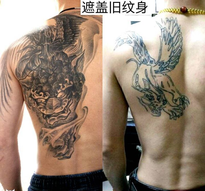 遮盖旧纹身:大貔貅纹身图片_背部传统写实动物原创成品纹身图案