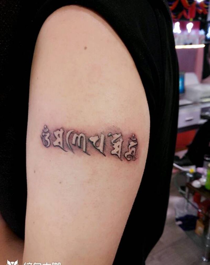 六字真言纹身图片_手臂清新字符成品纹身图案