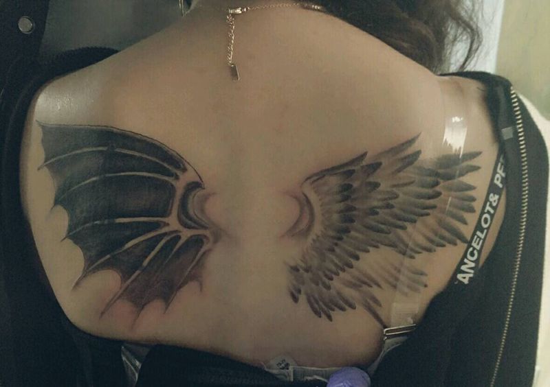 黑灰满背纹身图案