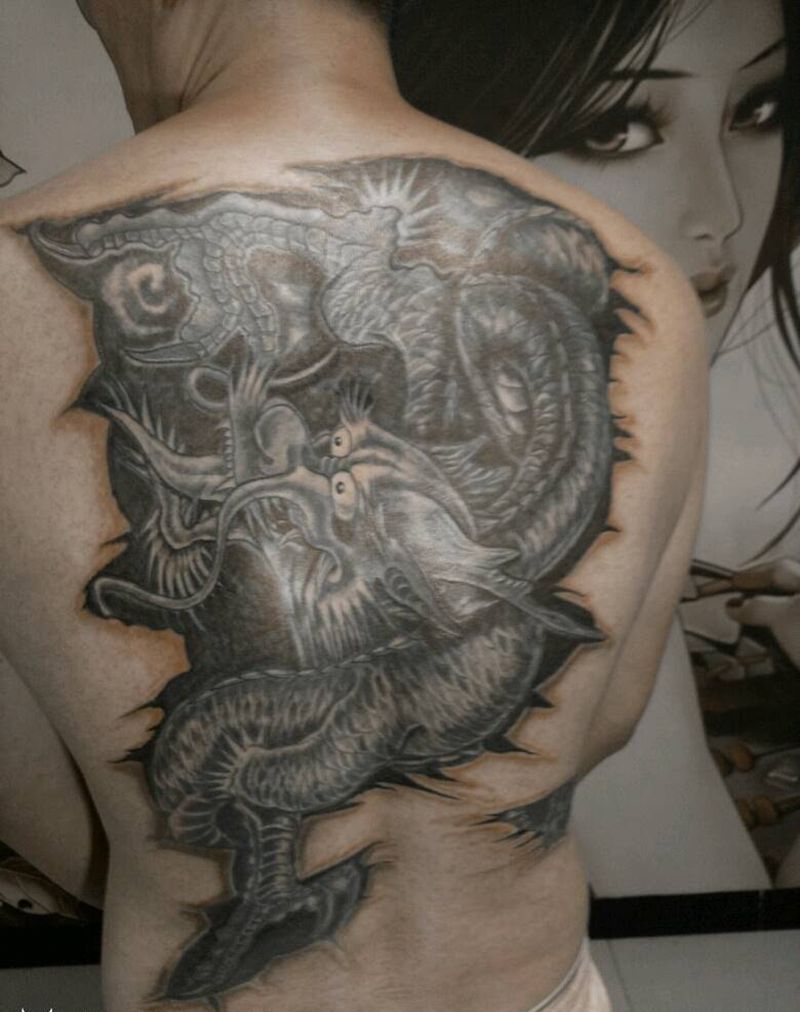 龙纹身图片_背部传统动物龙成品纹身图案