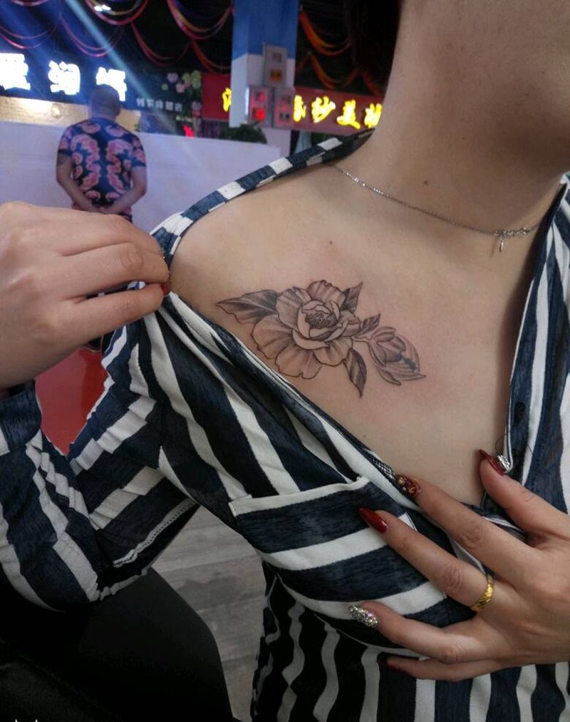 • 女性大花胸纹身_43张霸气漂亮的女性大花胸纹身图案作品