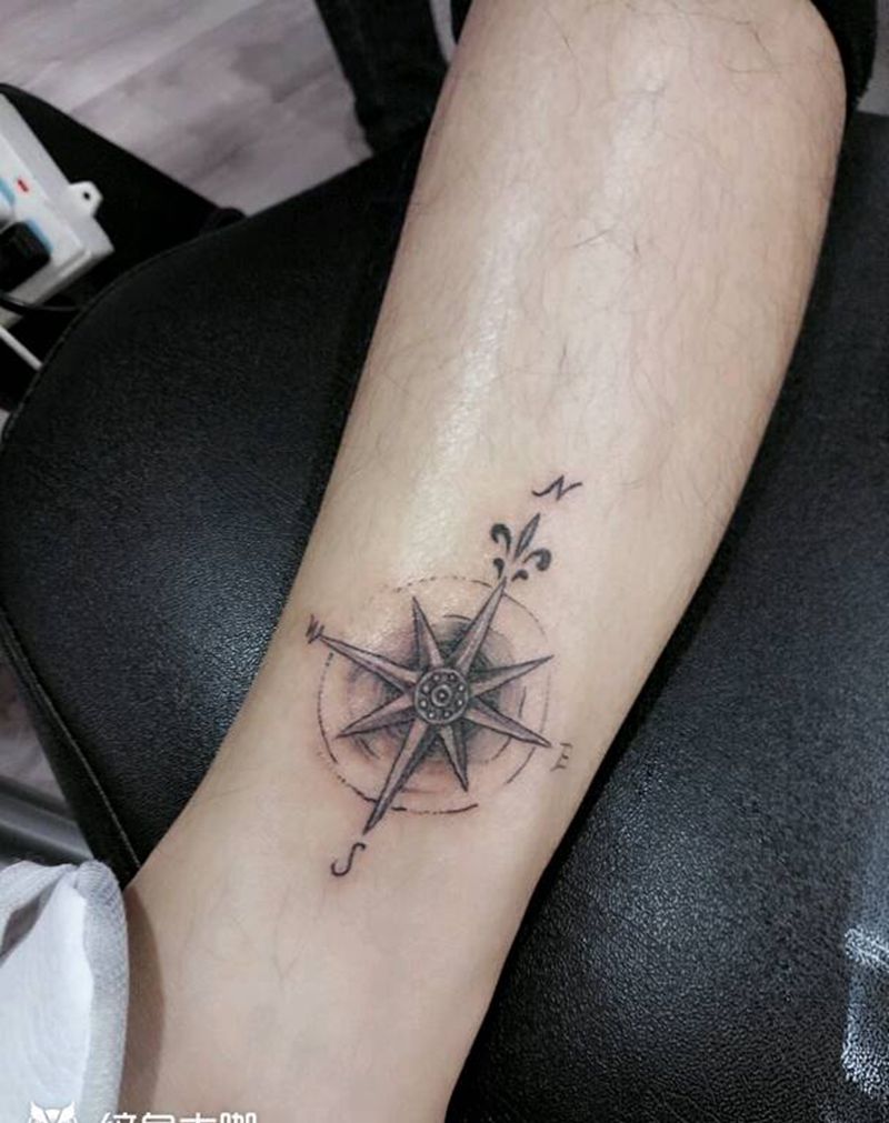 指南针纹身图片_脚部清新几何字符成品纹身图案
