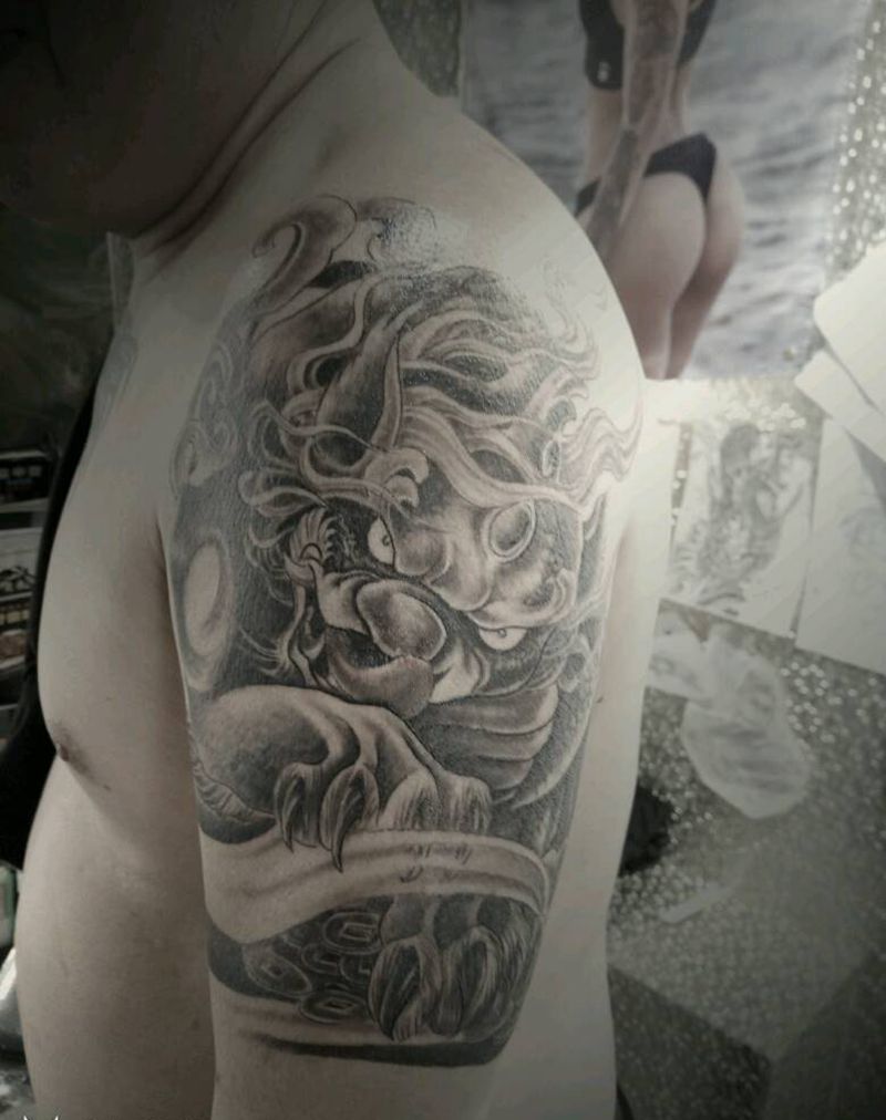 当前位置: 首页 >山西省大同市纹身店-精雕纹刺纹身图案>貔貅纹身图片_手臂传统写实动物成品纹身图案