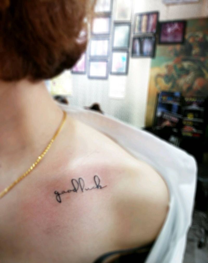 性感的锁骨纹身纹身图片_胸部清新字符成品纹身图案
