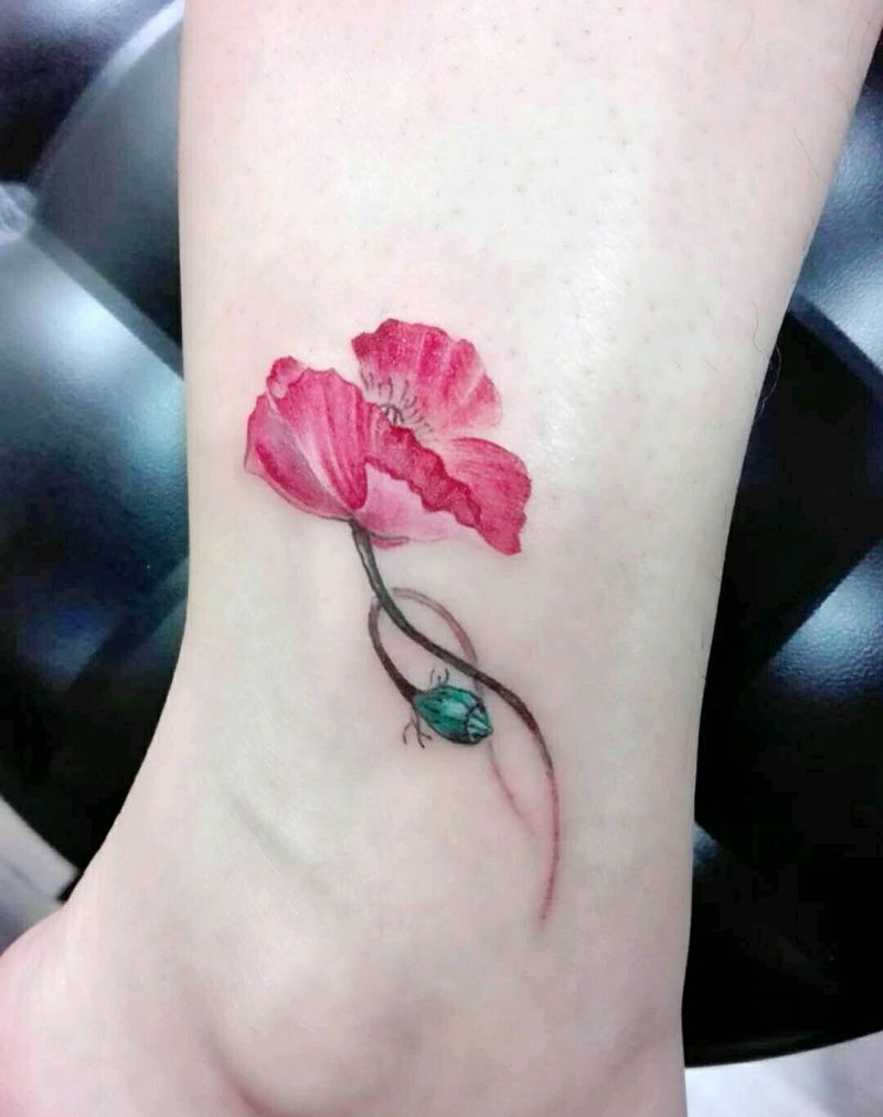 罂粟花纹身图片_腿部清新写实植物罂粟花成品纹身图案