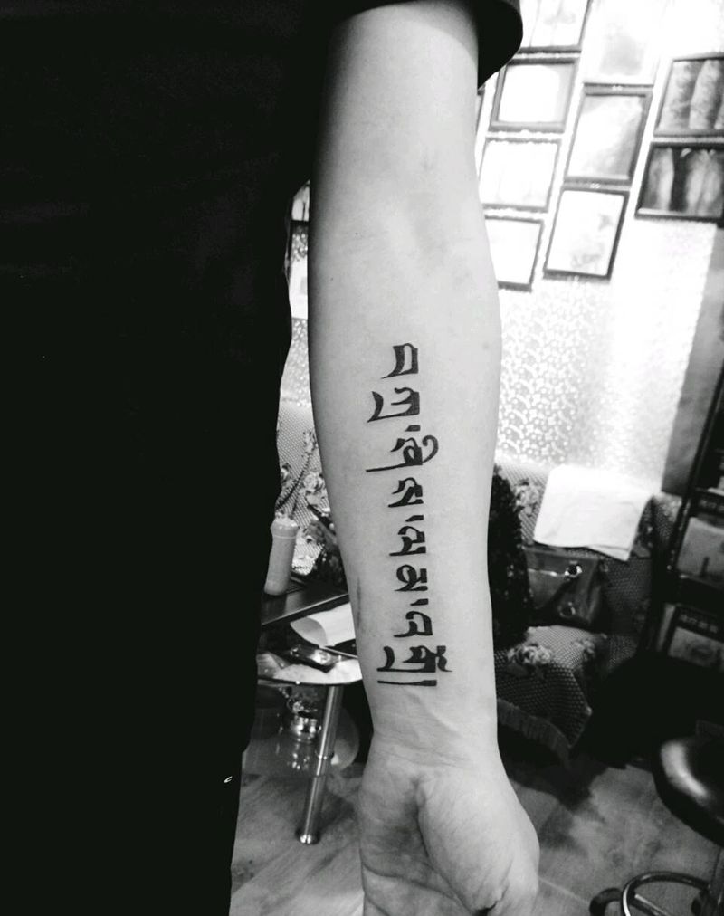 梵文/藏文纹身图片_手臂清新字符藏文成品纹身图案