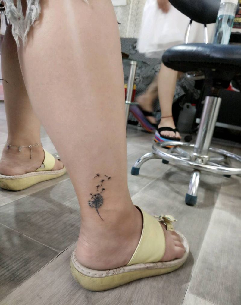 当前位置: 首页 >山西省大同市纹身店-精雕纹刺纹身图案>蒲公英纹身图片_腿部脚部清新植物成品纹身图案