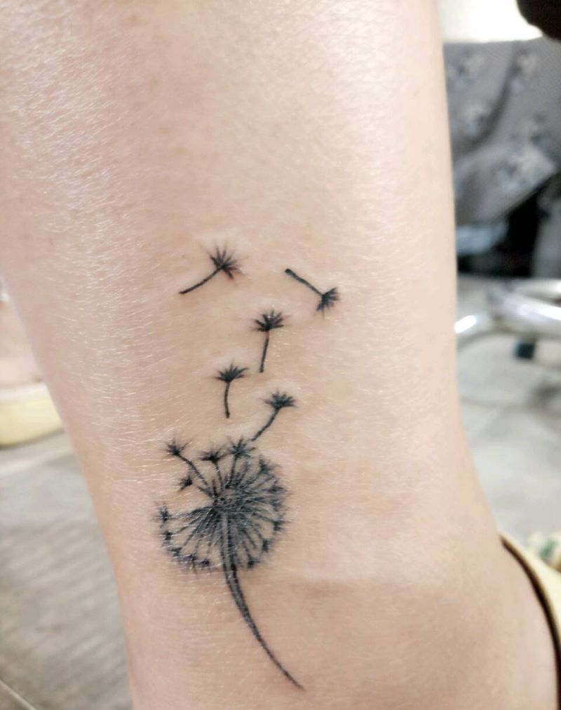 当前位置: 首页 >山西省大同市纹身店-精雕纹刺纹身图案>蒲公英纹身图片_腿部脚部清新植物成品纹身图案
