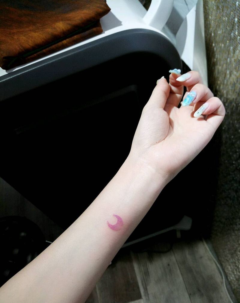 当前位置: 首页 >山西省大同市纹身店-精雕纹刺纹身图案>小清新紫月亮纹身图片_手臂清新几何图腾成品纹身图案