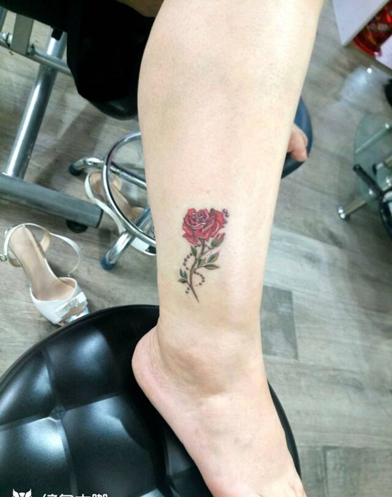 当前位置: 首页 >山西省大同市纹身店-精雕纹刺纹身图案>玫瑰纹身图片_腿部脚部清新写实植物成品纹身图案