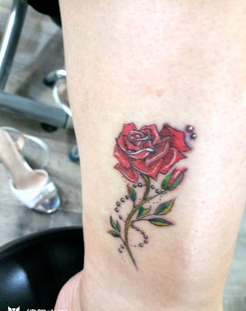 当前位置: 首页 >山西省大同市纹身店-精雕纹刺纹身图案>玫瑰纹身图片_腿部脚部清新写实植物成品纹身图案