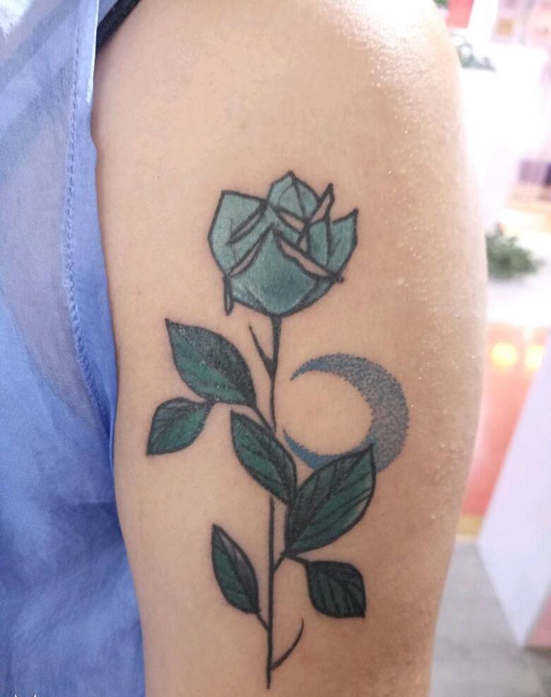 蓝色妖姬纹身图片_手臂清新写实植物成品纹身图案