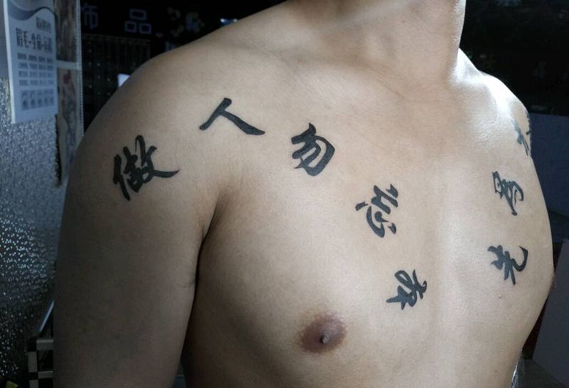 汉字纹身纹身图片_胸部清新字符成品纹身图案