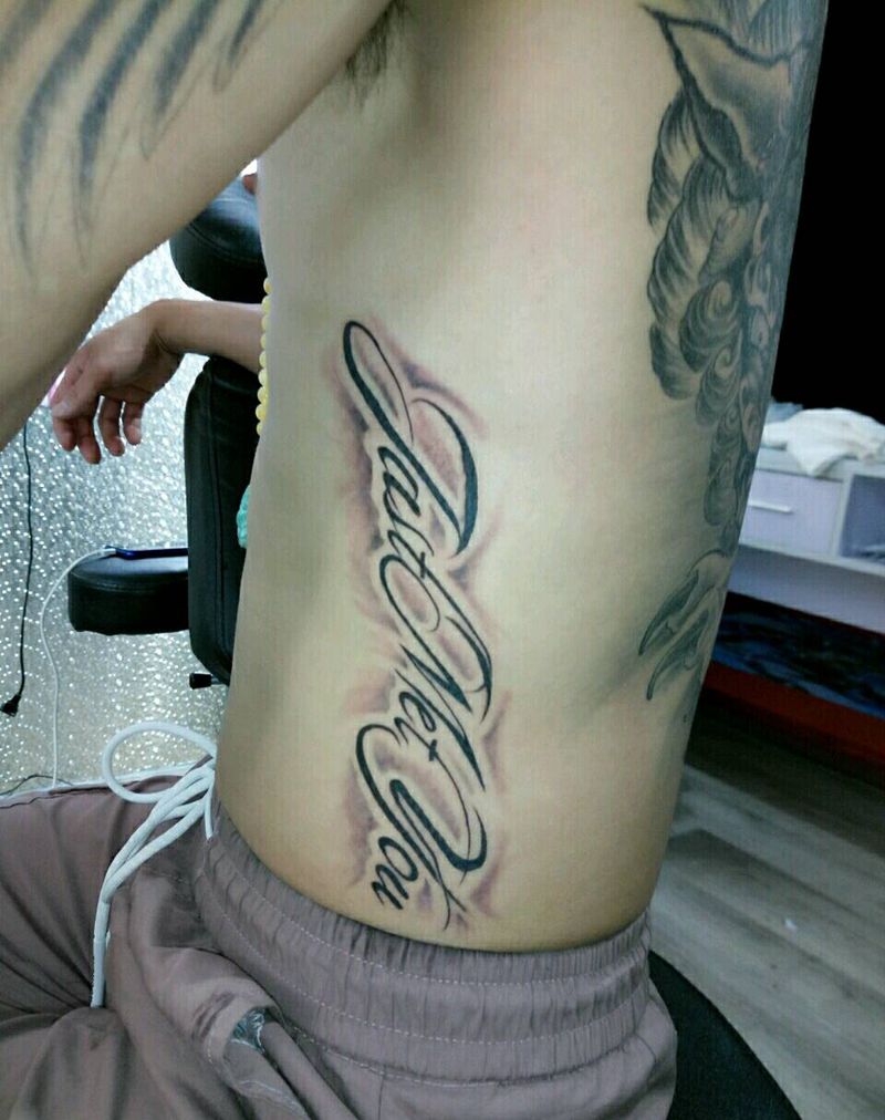 当前位置: 首页 >山西省大同市纹身店-精雕纹刺纹身图案>花体英文纹身图片_腰部清新字符成品纹身图案