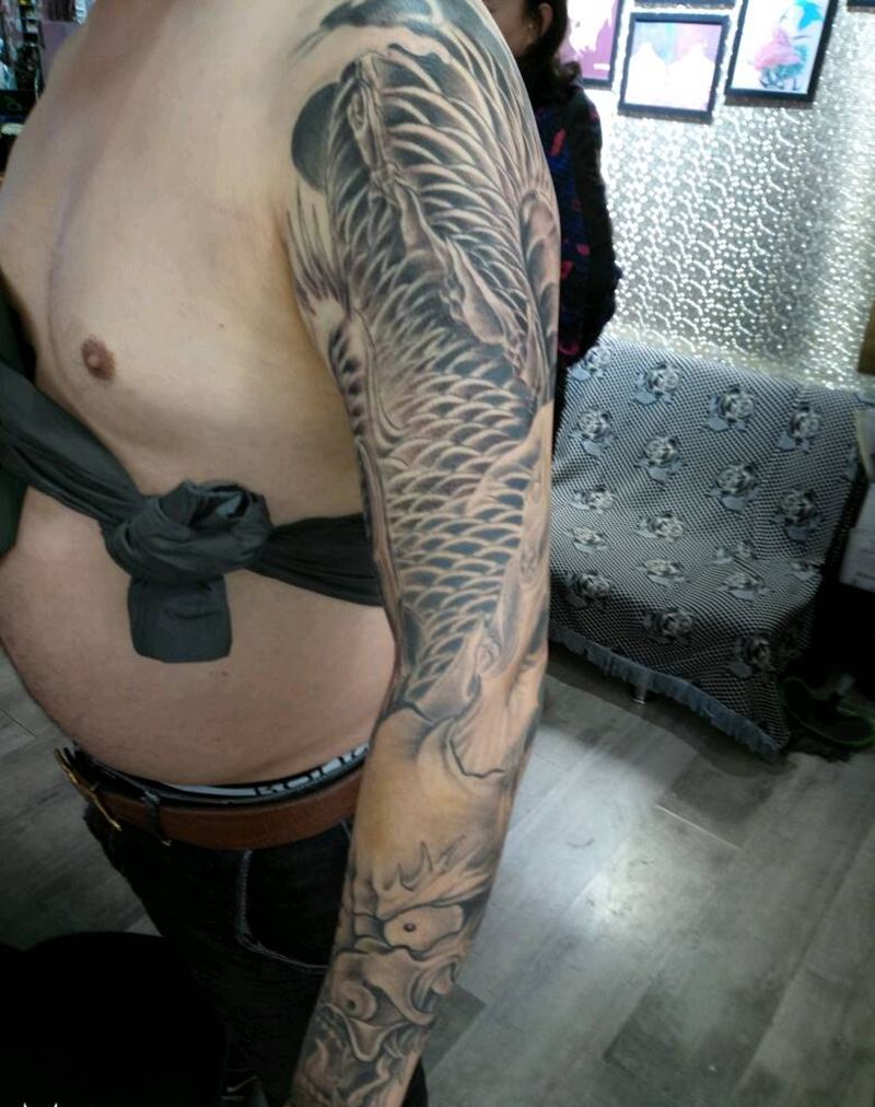 当前位置: 首页 >山西省大同市纹身店-精雕纹刺纹身图案>大龙臂纹身图片_手臂传统龙成品纹身图案