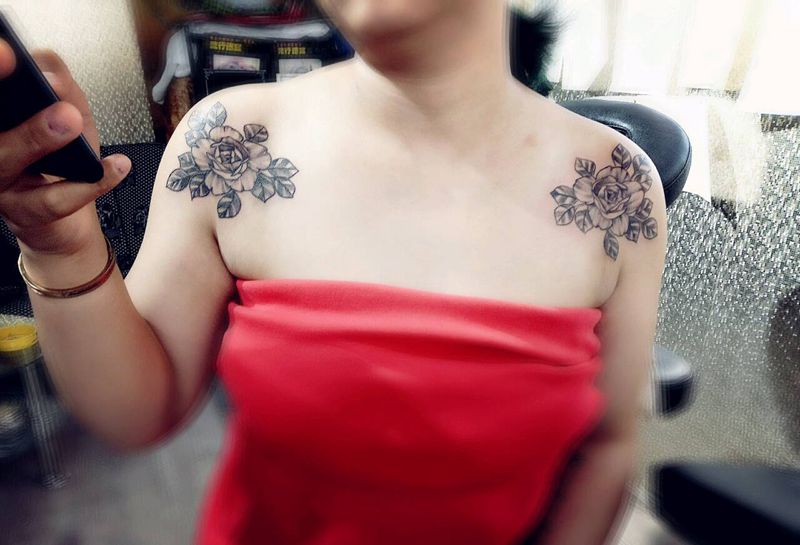 清新的肩花纹身图片_肩部胸部清新植物成品纹身图案